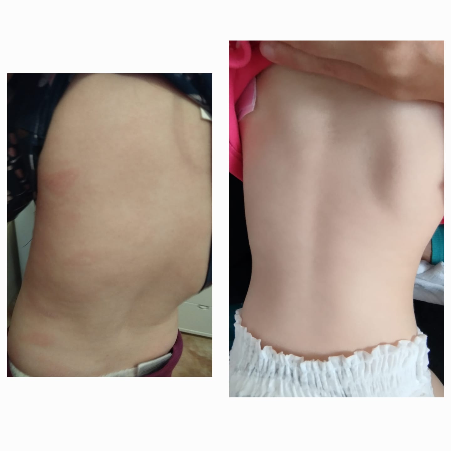 Začalo to suchým místem pod pravým okem, do týdne se to rozšířilo na záda, břicho a ruce. Ekzém je suchý, dívka se škrábe do krve. Během sprchování se zhorší svědění a ekzém zčervená.